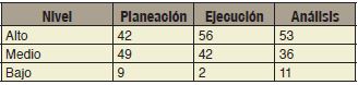 En el presente estudio, pudimos ver que el nivel de involucramiento de los alumnos fue, en su mayoría, de medio a alto, particularmente en la fase de ejecución, donde cada integrante del equipo cumplía una función determinada. La fase de planeación se encontró en segundo lugar, y la fase en la que hubo menor nivel de involucramiento fue la de análisis.