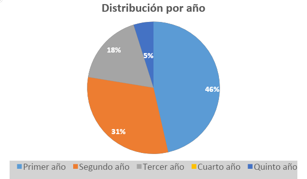 Una limitación del estudio fue que la mayor representatividad estuvo concentrada en los primeros tres años del programa, cuando los estudiantes tienen menor contacto con pacientes y escenarios hospitalarios. Los estudiantes de los últimos años de carrera tuvieron una menor participación. Por tanto, se tuvo una menor representatividad de la percepción de los estudiantes que llevaban más tiempo cursando el programa.