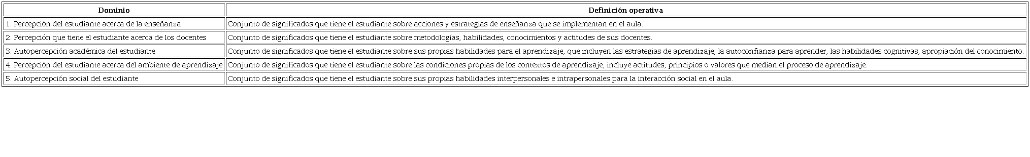 Estudio cuantitativo, no experimental, exploratorio, transversal. Se revisaron dos cuestionarios del DREEM, la versión original en inglés de Roff et al.4 y la traducción al español de Riquelme et al.1. Esta última versión se utilizó porque es una traducción validada al español chileno en un currículo integrador de una universidad de Chile. Con base en estas dos, se realizaron adaptaciones lingüísticas al español colombiano y las requeridas para un currículo integrador. Los 50 ítems se organizaron en los cinco dominios originales propuestos por Roff y se definieron operativamente (Tabla 1).