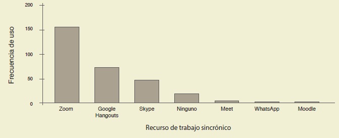 Una herramienta de comunicación síncrona es aquella que permite interactuar en tiempo real con otras personas que están en otro sitio, al recibir la información de forma prácticamente instantánea. Inicialmente las videoconferencias tuvieron un auge importante en el mundo empresarial, en los últimos años comenzaron a usarse más en educación y durante la pandemia han sido la principal herramienta para mantener la comunicación y la docencia a distancia. La evolución que han tenido estas plataformas al disminuir sus costos, ofrecer versiones académicas y gratuitas, así como incorporar cada vez más herramientas como escritorio compartido, chat, pizarra compartida, capacidad de usar presentaciones de PowerPoint, entre otras, explican su rápida asimilación durante la pandemia. Por otra parte los avances en infraestructura de conectividad, hardware y software brindan videoconferencias de excelente resolución y calidad visual y auditiva. Citando a Julio Cabero: