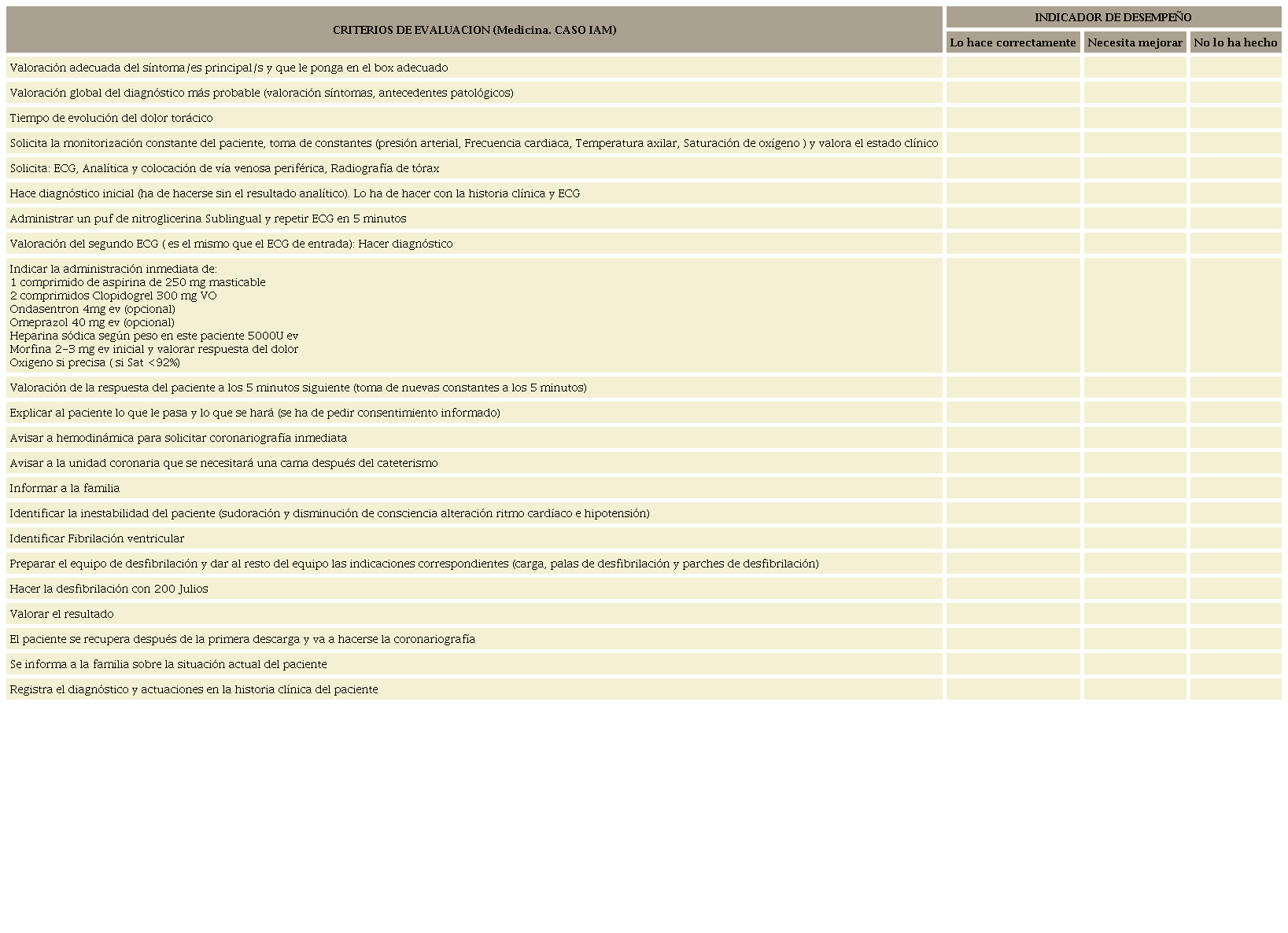 Rúbrica de evaluación de los desempeños de los estudiantes de Medicina para el caso 1