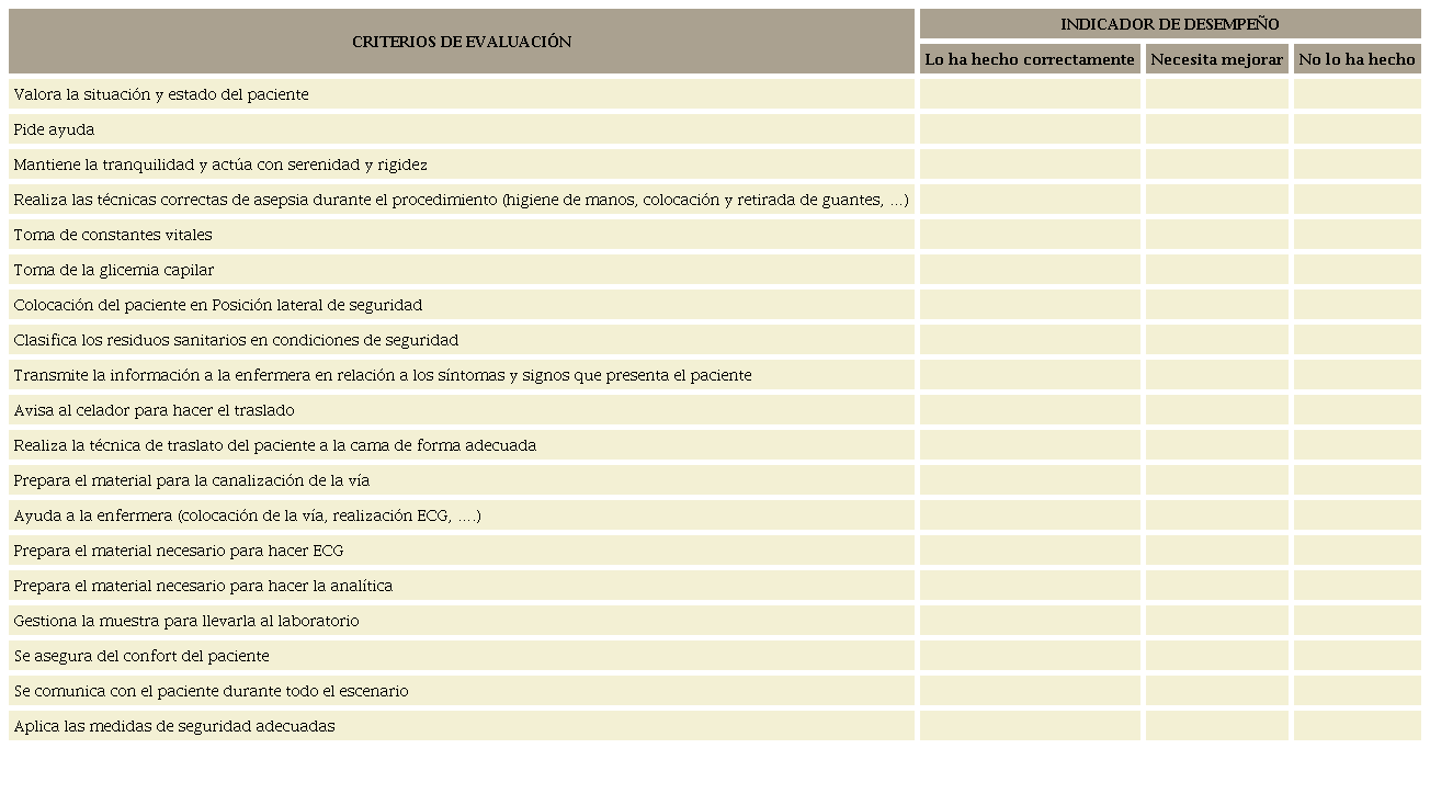 Los autores quieren agradecer la colaboración de los estudiantes de medicina, de enfermería y de formación profesional en ayudantes de enfermería que participaron en las sesiones de simulación.