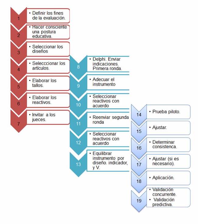 Es muy importante que el instrumento no pierda validez y que no haya copia en su resolución o que se difunda de manera inadecuada porque esto limitaría su validez y consistencia, con la pérdida del esfuerzo elaborado por tantas personas. En la figura 1 se muestran los pasos del proceso detallado.