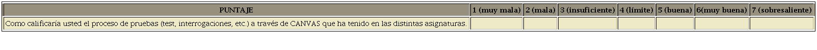 Finalmente, se pidió a los estudiantes que calificaran las evaluaciones de los aprendizajes realizadas a través del sistema de gestión educacional Canvas, con nota en una escala de 1 a 7 (1 muy malo y 7 excelente). La calificación promedio fue un 4.4, esto corresponde a la categoría de suficiente. Las principales dificultades referidas por los estudiantes en las preguntas de respuesta abierta son, en un 40%, la preocupación por los problemas de conexión, que podría generar una desconexión involuntaria a internet, enfrentándose al riesgo de que sus respuestas no queden guardadas. Además, el 37% de los estudiantes refiere que el reloj en pantalla durante la evaluación les produce un aumento de la ansiedad.