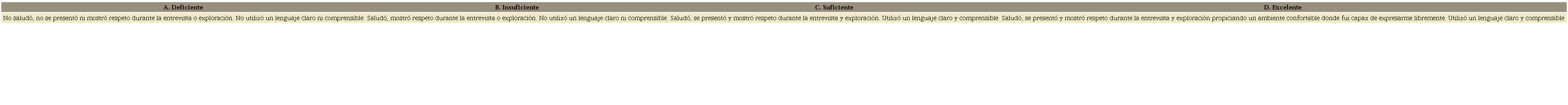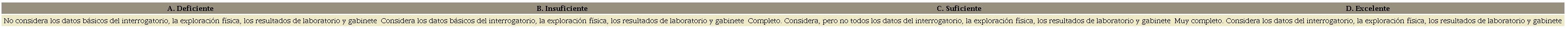 Evidencia de validez del proceso de respuesta: El instrumento se diseñó de acuerdo con los comportamientos que simulan el acto médico que se desarrolla en el primer nivel de atención, lo cual se obtuvo siguiendo el procedimiento ejecutado para el diseño de rúbricas holísticas para ECOE25.