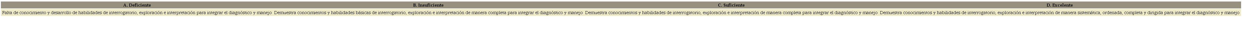 Rúbrica de la competencia 5 con sus habilidades clínicas correspondientes