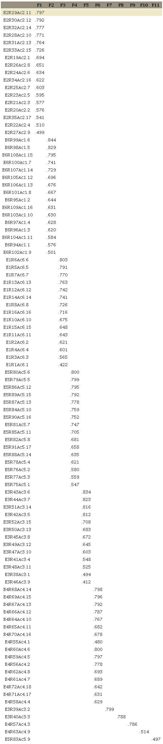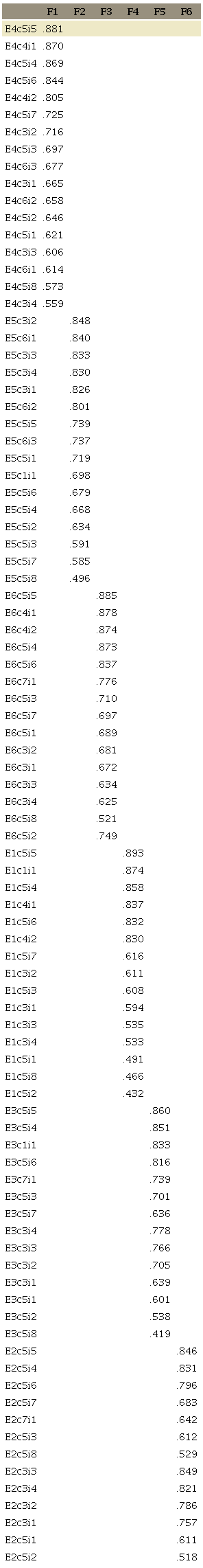 Evidencia de validez de estructura interna: Al evaluar la discriminación de los reactivos en ambos instrumentos se observó que los 99 permiten distinguir entre puntajes altos y bajos (p < 0.001), la consistencia interna de la prueba obtuvo un Alfa de Cronbach de 0.96 para el ECOE presencial y de 0.93 para el ECOE en línea considerando los 99 reactivos que integran la totalidad de las seis competencias evaluadas. Para la estructura interna del instrumento presencial se identificaron seis factores que explican el 60.7% de la varianza y 6 factores más cinco indicadores para la modalidad en línea con una varianza explicada de 56.6% (tabla 2 y anexo 2). Los seis factores de la modalidad presencial se agrupan de acuerdo a las seis estaciones evaluadas, en tanto, en la modalidad en línea 6 factores hacen referencia a las seis estaciones más 5 indicadores que no cubren el requisito para integrar un factor.