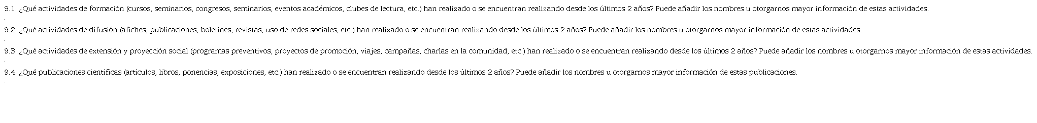 9. Las siguientes preguntas se relacionan con las actividades académico-científicas que se realizan en el semillero, por favor descríbanos las actividades que correspondan.