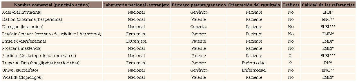 Introduction: It has been reported that 15% of the promotional products from the pharmaceutical industry (PI) include information not supported by the results of the original research.