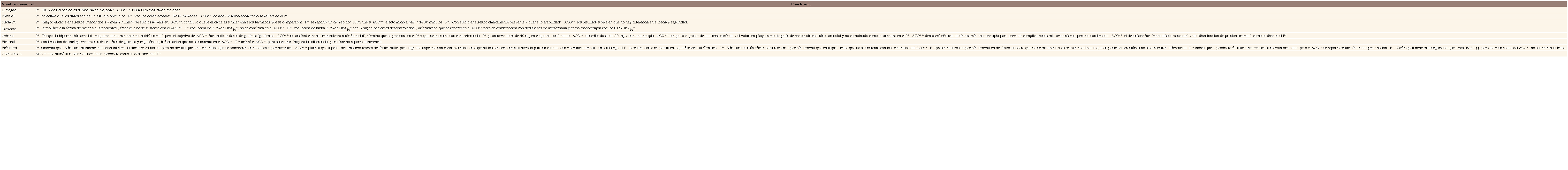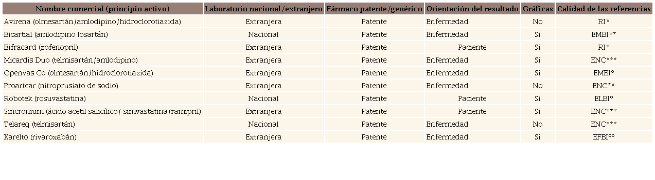 Objective: Evaluate the validity of the scientific information that supports the data included in the pharmaceutical industry promotional brochures for internists and cardiologists and reconcile the information.