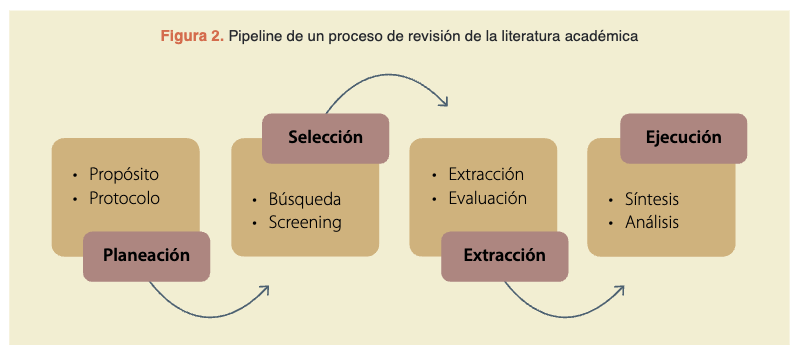 Las guías presentadas por Okoli y Collins y cols. relatan el proceso de revisiones sistemáticas aplicadas originalmente a la medicina, donde los métodos de revisión difieren conceptualmente de otras áreas. Sin embargo, los retos que enfrenta la investigación actualmente en sentido epistemológico han demandado una búsqueda que pueda generalizar las revisiones sistemáticas con cambios adaptables a cada disciplina, donde se logre un equilibrio en encontrar eficientemente las metodologías cuantitativas y cualitativas más representativas dentro de los sistemas de información. La calidad de una revisión depende del rigor en la planeación, selección, extracción y el análisis de la información. Se sabe que el objetivo principal de este proceso es hallar tantos trabajos como sea posible, capaces de responder nuestras preguntas de investigación y seguir los protocolos iniciales propuestos en una etapa de planeación.