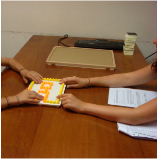 Finally in Labyrinth child is asked to find the way to go out from the obstacles. Contrary to the WISC the labyrinth is not drawn but in 3D, so that it can be haptically manipulated. Although in the WISC-IV it is facultative we decide to include it because in blind children it is very useful for evaluating sense of direction the space, the ability to make spatial cognitive maps, and planning (fog. 5).