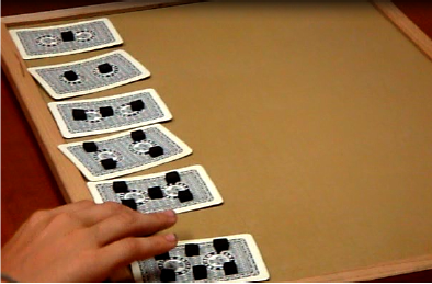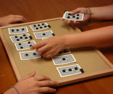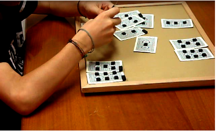 In Playing Cards Sequencing children are asked to provide a series of playing cards back to the examiner in a predetermined order: from 1 to 6 and in couples. Cards are marked with a thick grip tape to be haptically recognized. It measures working memory, concentration, orientation and planning abilities (figg. 3.1, 3.2,3.3).