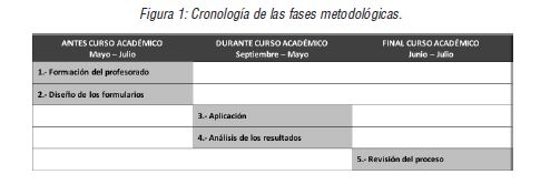 Para poder llevar a cabo la ejecución efectiva de esta iniciativa incluida en el Plan de Innovación Docente de la Universidad de León, se han desarrollado cinco fases metodológicas (Figura 1).