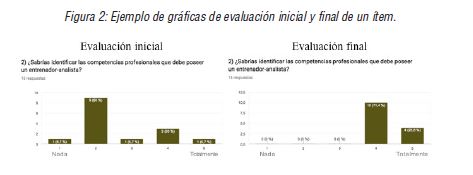 La información obtenida de los cuestionarios de evaluación final ha permitido constatar que en la totalidad de los ítems se ha producido un incremento o mejora significativa en el aprendizaje (al menos, en la percepción del mismo) de los contenidos de enseñanza que habían sido abordados (Figura 2).
