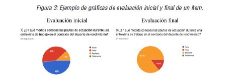 Fase 3: Aplicación. En la sesión inicial (jornada de acogida) de este Máster, se informó a los estudiantes matriculados que serían empleados recursos digitales de evaluación a los que podrán tener acceso a través de sus teléfonos móviles. Al inicio y finalización del periodo de impartición de las asignaturas. Los cuestionarios de evaluación inicial se han cumplimentado directamente en la primera sesión de cada materia, utilizando los alumnos sus teléfonos móviles u ordenadores. Para la cumplimentación de la evaluación final, los profesores responsables se han encargado de enviar un email con un link de acceso a los formularios correspondientes, aplicándolos así de forma integrada en el proceso formativo.