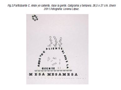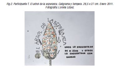 Por último, fase producción, representaron el caligrama, transfirieron las letras sobre la repre- sentación e iluminaron el caligrama si lo consideraban oportuno.