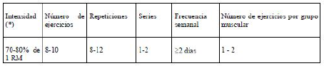 Las recomendaciones generales del ACSM (Nelson et al., 2007) para el entrenamiento de la fuerza muscular con personas mayores indican: