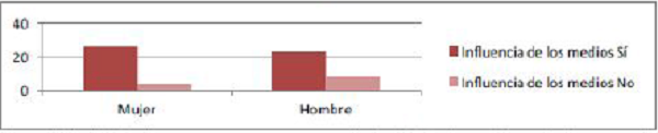 A la pregunta “Los medios de comunicación (cine, televisión…), ¿crees que influyen en nues- tra manera de pensar? responden (ver Figuras 43 y 44):
