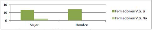 Ante la pregunta “¿Has recibido en algún momento formación sobre violencia de género?”, las respuestas son las siguientes (ver Figuras 5 y 6):