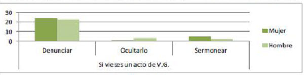Tras analizar estas respuestas, se concluye que ambos grupos consideran de forma mayoritaria que la violencia de género puede aparecer ya en el noviazgo. También coinciden en que denunciarí- an al agresor si viesen un caso de violencia de género.