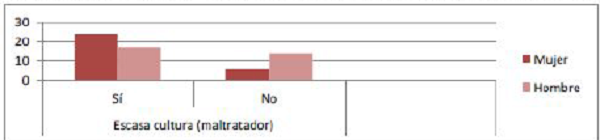 A la afirmación “Los maltratadores son personas con poca cultura”, ambos grupos responde de la siguiente manera (ver Figura 23 y 24):