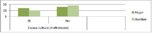 Después de observar los datos obtenidos en ambos grupos, se advierte que existen diferencias a la hora considerar la escasa cultura de los agresores como factor que influye a la hora de ejercer violencia de género. En tal sentido, se detecta que los jóvenes normalizados han interiorizado este mito.