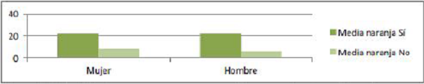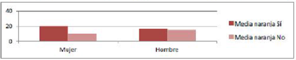 Se detecta que ambos grupos responden negativamente ante el mito del amor verdadero, pero al preguntarles sobre el mito de la media naranja responden de manera afirmativa por lo que ambos grupos creen en él.