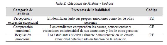 Para clasificar la información se empleó el programa MaxQdA y para evitar cualquier sesgo en investigación se solicitó a un experto en el área que revisara la codificación de las entrevistas. Hay que destacar que además de las categorías antes mencionadas se incluyó una adicional para indicar deficiencias en habilidades emocionales (DHE) que derivaban en comportamientos nocivos para los alumnos