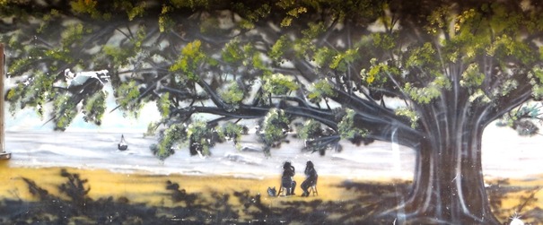 A pintura já foi revitalizada pelo mesmo pintor. Nela é possível observar que o pintor MG teve cuidado em manter certos aspectos da natureza local na imagem desenhada; por exemplo, as águas de Mosqueiro vêm de rios, portanto, sua cor se assemelha ao cinza e ao castanho, como na pintura. Também aparece um barco na imagem, elemento tradicional na visualidade amazônica, no cenário da cultura ribeirinha, que apresenta relação intrínseca com os rios. Sem contar a riqueza de detalhes que o artista deu à natureza representada na pintura, transpondo a imponência da árvore pertencente à paisagem real para sua paisagem ideal.