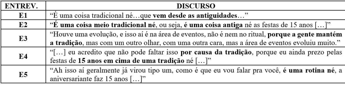 “a gente percebe que é muito mais pra fazer uma festa, do que propriamente por causa da tradição que existia antigamente de se apresentar a menina à sociedade, essas coisas nesse sentido.” (E4)