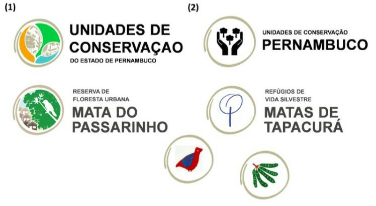 A criação de um novo logo para uma unidade de conservação obriga a observar o Manual de Aplicação da Marca da CPRH (2017). Na Figura 8 pode-se ver a marca de cobertura para todas as unidades de conservação do estado e a marca coberta de uma unidade específica.