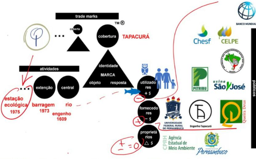 No “objeto da marca” faz-se a história do nome Tapacurá e projeta-se o seu futuro ligado ao conjunto das cinco matas preservadas. Tapacurá é um nome indígena com múltiplas referências: designa o rio que circula entre as matas, a sua grande barragem que abastece de água o Recife, um engenho de açúcar seiscentista, um centro de pesquisa universitário. Essa história está na origem das associações detetadas na resposta à marca e os conselheiros percebem que deve ser o ponto de partida para definir a sua missão futura.
