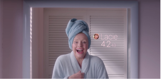 Os consumidores percebidos como insatisfatórios seriam afastados, exatamente, por sua incapacidade de participar dos jogos sociais e, por conseguinte, de atingirem o status de vencedores. Lacie, após tentativas frustradas de melhorar sua reputação e aumentar sua pontuação, acaba por atingir esse resultado catastrófico, muito diferente daquele que tinha em mente no início da trama.