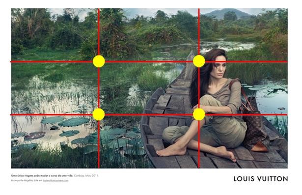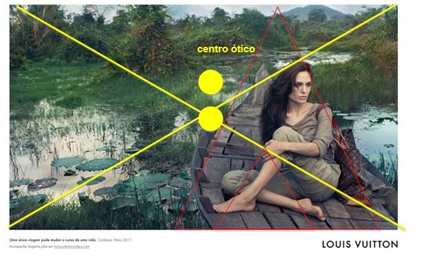 Sendo assim, o rosto da mulher está posicionado próximo ao vértice superior direito do retângulo central, o que consiste em um ponto focal de destaque.