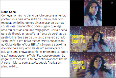 A campanha “Capricha na Selfie” do Banco do Brasil convidava o público a abrir uma conta no aplicativo da instituição se apropriando de termos comuns na internet como selfie (foto que uma pessoa tira de si mesma), incentivando que o cliente coloque sua foto no perfil do aplicativo do banco. A campanha contava com a participação de influenciadores digitais e teria um esquete de humor no canal Porta dos Fundos, até a veiculação do comercial “Capriche na Selfie” em televisão aberta, quando sua censura culminou no cancelamento de toda a campanha. O comercial contava com catorze personagens de diversas etnias e usava uma linguagem jovem e divertida, se apropriando de termos que envolvem o selfie – como “faz carão”, “vira o pescoço pro lado”, “biquinho de vem cá me beijar” entre outros. A narrativa do comercial se baseia nos personagens-mote que rompem com um modelo heteronormativo, tirando selfies para colocarem nos aplicativos em suas contas do Banco do Brasil e ao fim exprimia um caráter explicativo do que é preciso fazer para abrir uma conta na plataforma digital da instituição.