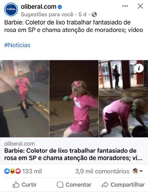 Além das inúmeras ações planejadas para a divulgação do filme, todas elas alicerçadas em alguma medida na exploração da potência cromática da cor que conhecemos como “rosa chock” ou, simplesmente, pink . Se anos atrás, certo tom mais esmaecido da mesma matriz cromática já vinha se tornado uma febre – eram os tempos do chamado rosa millennial ou millennial pink –, agora sua versão mais intensa é que alcança a notoriedade, fazendo com que estejamos vivenciando uma verdadeira onda contagiante dessa cor/ Com manifestações individuais espontâneas, invariavelmente midiatizadas e tantas outras intencionalmente associadas, não necessariamente por meio de contratos de licenciamento ( Figuras 4, 5 e 6 ), ou ainda na mais pura liberdade gazeteira (7), como bem postulou De Certeau ( 1994 ), a cor rosa tomou conta da vida no mundo físico e digital, reforçada pelas ações com Google, Wetransfer e outras plataformas de alcance global, que tornavam as telas de computadores e celulares, totalmente rosas, desde que qualquer referência a Barbie fosse mencionada, em uma ubiquidade sem precedentes.
