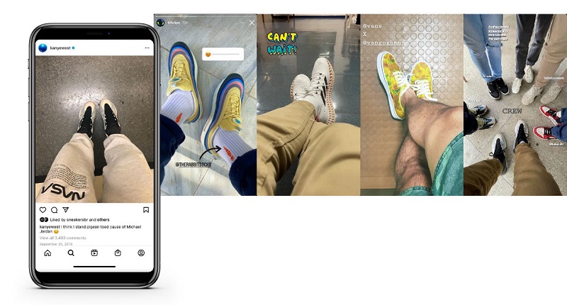 “Pois é isso a imagem técnica: virtualidades concretizadas e tornadas visíveis” (FLUSSER, 2008, p. 24). Essas imagens técnicas são o resultado de programas que se situam no interior dos aparelhos e são comandadas por consumidores imaginadores que, embora tenham a sensação de liberdade criativa, estão dentro de limites invisíveis impostos pelos programas, mas também pela própria cultura. “Por detrás de todos estes programas co-implicados e conflitivos reside a intenção de conferir significado a um universo absurdo” (FLUSSER, 2008, p. 54). O exemplo da Figura 3, das fotografias dos pés calçados feitas pelos próprios consumidores, nova espécie de selfie forjada pela midiatização digital da ritualística do consumo, em primeira pessoa, colocando o sneaker como elemento central, leva à reflexão, pois ao mesmo tempo que revela uma democratização da produção pelo acesso aos aparelhos e pela imaginação dos usuários nas redes sociais, desperta para uma padronização motivada pela cultura e pelo algoritmo. Esse é só um dos inúmeros exemplos de imagens que seguem a mesma estética, enquadramento, propósito, e são rapidamente convertidas pela indústria de bens de consumo. A “criatividade programada”, apontada por Flusser (2008), brinca com o olhar, o imaginar e o manipular do indivíduo, mas é nesse movimento que o programa identifica os padrões e rapidamente coloca-os em relevância.