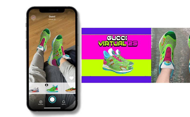 Embora este percurso teórico não se consolide em si como método – ainda que possa prever uma composição metodológica que se lhe adeque –, a sua construção foi pensada para atravessar algumas dificuldades da pesquisa sobre linguagem algorítmica na publicidade e dar conta do objeto empírico escolhido para este texto. Aqui, os objetivos teóricos da pesquisa se alcançam por meio do trabalho empírico, que consiste na análise do lançamento do Gucci Virtual 25, um sneaker disponível apenas em realidade aumentada e vendido a US$ 12 no aplicativo da grife italiana.