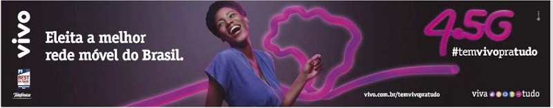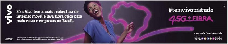 Os dois últimos anúncios veiculados em 2019 apresentam a mesma composição visual, diferenciando-se apenas pelo texto, já que divulgam temáticas diferentes. A primeira peça ( Figura 4) divulga os serviços da operadora, ao passo que a segunda ( Figura 5) divulga premiação recebida pela Vivo.