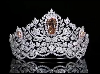 A coroa utilizada por mais tempo para consagrar a campeã do concurso de beleza, teve a duração de 38 anos (1963 a 2001), era confeccionada em ouro branco e tinha mais de mil diamantes; apresentava ornamentos em forma de ondas nos lados e o logotipo Miss Universo na parte central. No ano de 2019, o símbolo da consagração foi modificado e recebeu o nome de The Power of Unity, conforme exibe a Figura 1. A joalheria libanesa, Mouawad9, que criou a peça, explica o nome da seguinte forma: “[...] destina-se a celebrar a mulher por ser complexa, diversificada, assumidamente ambiciosa e forte”10. Avaliada em torno de US$ 5 milhões de dólares, a coroa atual possui mais de 1.770 diamantes, engastados em uma base de ouro de 18 quilates, além de um diamante canário dourado de 62,83 quilates.