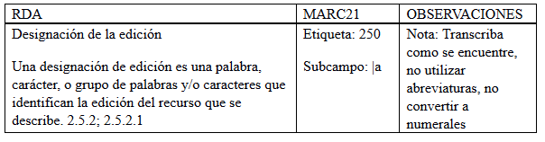 Una modificación importante es la que se refiere a la etiqueta 040 a la cual se le agregó el subcampo |e para señalar que se trata de un registro rda.
