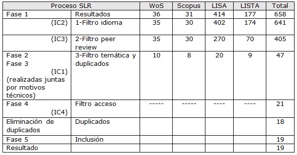En la tabla 1 se muestra el proceso y el número de artículos resultante de cada fase.