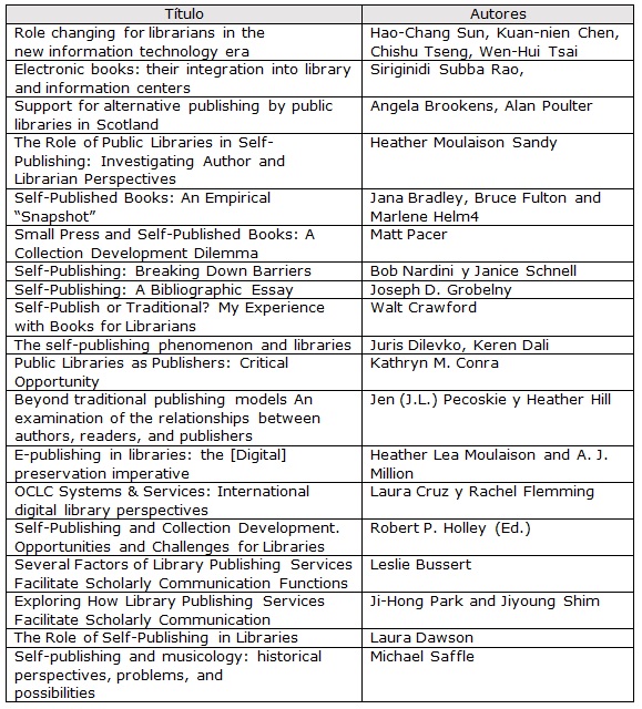 Palabras clave: Autopublicación, Bibliotecas, Revisión Sistema Literatura.