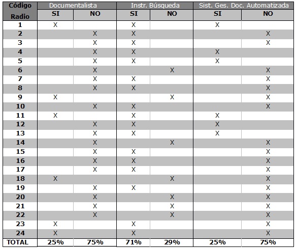 estudiar los instrumentos de búsqueda y recuperación documental que utilizan las emisoras, y verificar si tienen instaurado un sistema automatizado de gestión documental;