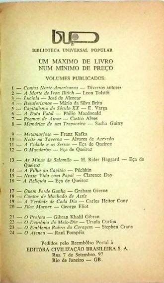 Palavras-chave:Biblioteca Universal PopularBiblioteca Universal Popular,Editora Civilização BrasileiraEditora Civilização Brasileira,Produção editorialProdução editorial,Livros de bolsoLivros de bolso,ColeçõesColeções.