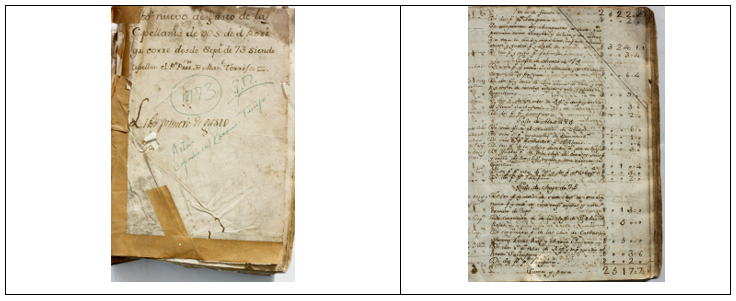En los libros antiguos del corpus, se constató la presencia de manuscritos, en tanto categoría establecida en la investigación para clasificarlos, como el libro Nuevo de gastos de la capellanía de N.S. de el Ross (ver figura 8).