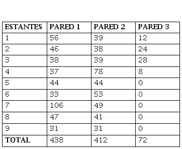 Con el propósito de determinar el número de libros antiguos en la colección y sus características, se identificaron de acuerdo con el estante en el que se ubicaban. Los resultados se presentan en la siguiente tabla (ver tabla 1).