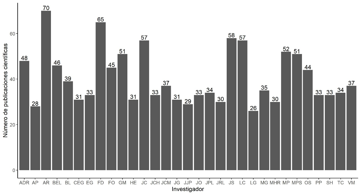 Para los análisis bibliométricos se trabajó en una ventana de tiempo de 20 años (2000-2020). Inicialmente, se colocó el apellido completo y la letra o letras iniciales del nombre de cada investigador, así como la filiación actual del centro al que pertenece, usando el motor de búsqueda Scopus. En el perfil de cada investigador se contabilizó el número total de publicaciones científicas indizadas solamente en Scopus dentro del periodo analizado, tomando en cuenta únicamente artículos científicos como tipología documental; excluyendo libros, capítulos de libros, memorias de congresos y revistas no indizadas en Scopus.