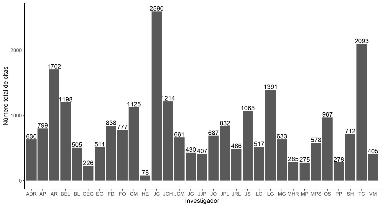 Para el análisis de citación, se registró el número de citas recibidas por cada año de cada investigador más productivo. En esta etapa, se consideró las citas recibidas de libros, pero no las autocitas (es decir, las citas que el mismo autor coloca en su propio trabajo) (Jaksic & Santelices, 1991). No se incluyeron autocitas que, aunque pueden utilizarse positivamente para promover estratégicamente la investigación de jóvenes académicos, también suelen percibirse de forma negativa, ya que pueden considerarse como trampas para inflar el valor del índice-h de los investigadores (Sandnes, 2020) y transmitir una impresión errónea del impacto de un investigador (Rau & Jaksic, 2020).